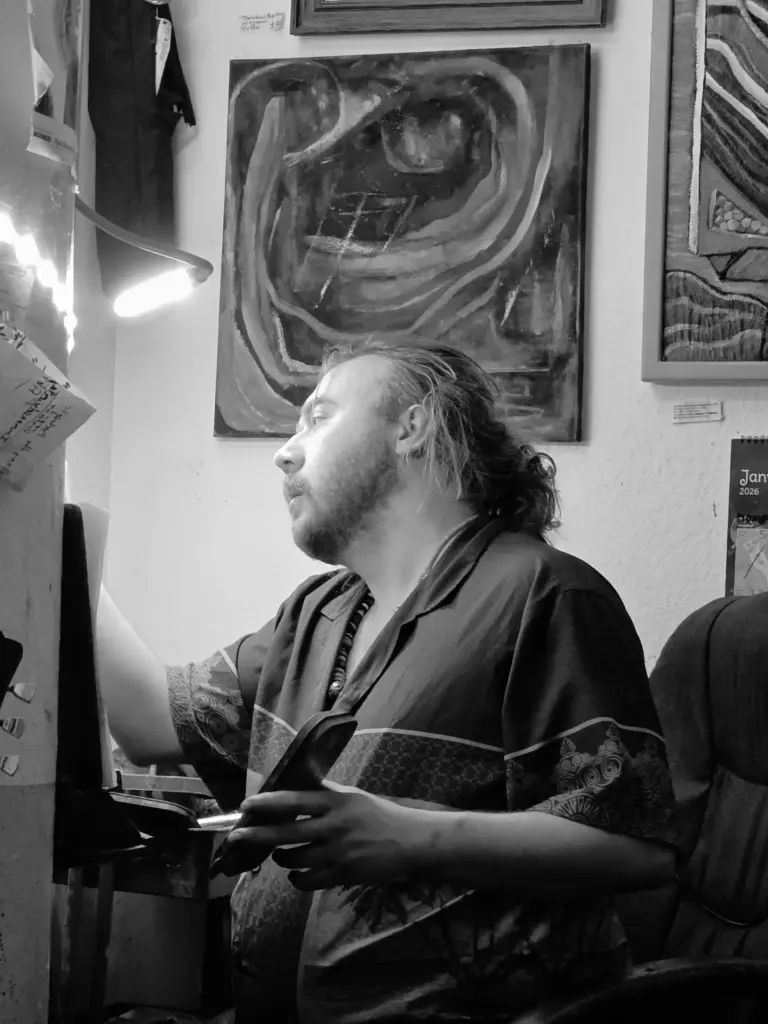 Andrew got his Bachelor Fine Arts for Painting & Drawing at UW-Milwaukee Peck School of the Arts in 2022. And since 2022, Andrew has held an artist residency at Material Studios + Gallery. When he’s not working on his own personal work, Andrew likes creatively collaborating with emerging artists as a way of building a closely-knit network of artists supporting each other.